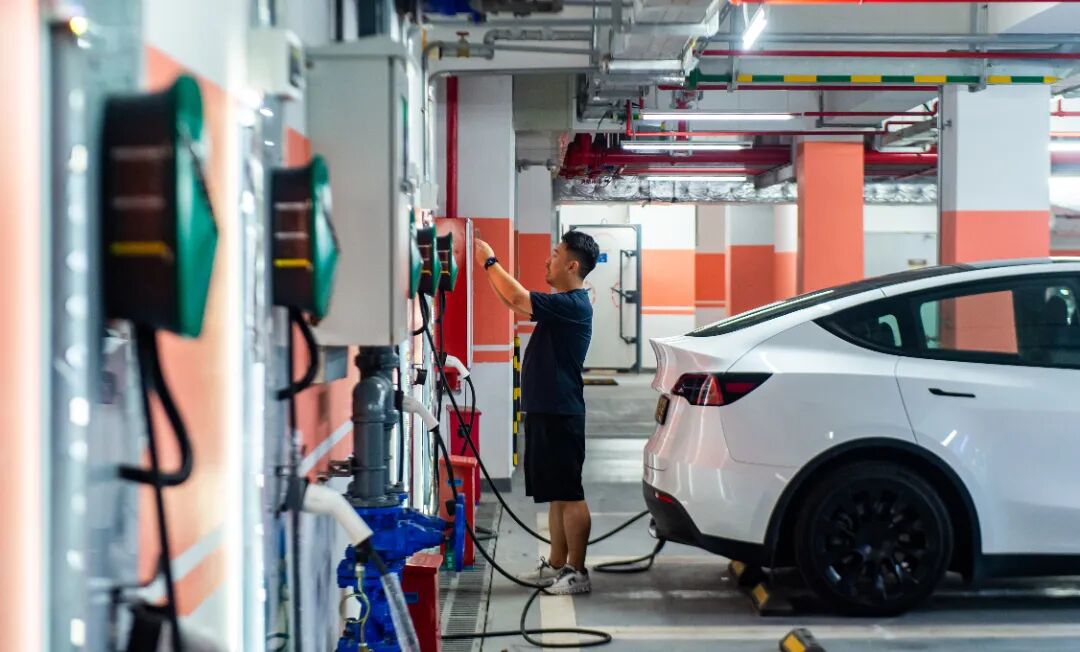 ▲澳门新能源车主正在横琴澳门新街坊使用充电桩充电。