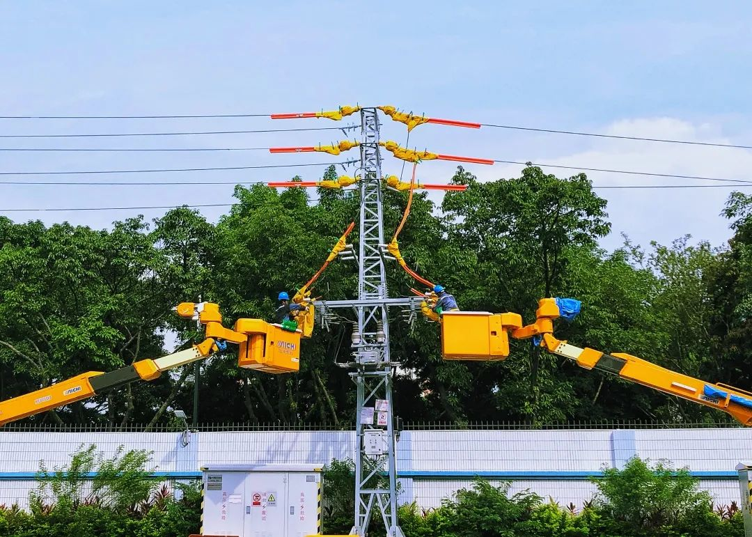 南方电网广东佛山供电局开展带电作业,避免因施工作业停电对客户生产生活造成不便。蔡辉裕 摄