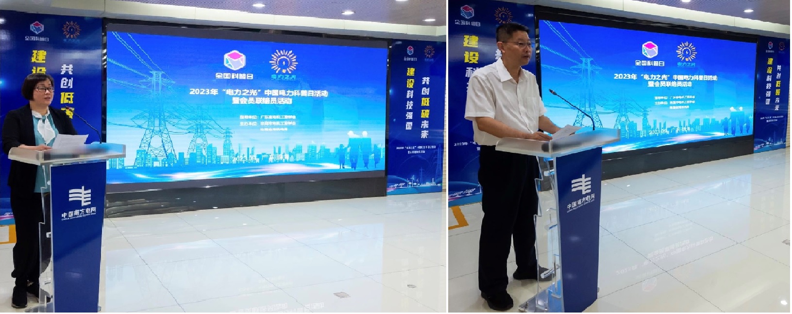 开幕式上,曹安瑛理事长为珠海金湾供电局电力科普展厅获评中国电机工程学会电力科普教育基地颁发了牌匾,杨穆书记和李杏副主任为张晨晨、崔莹两名中国电机工程学会“电力之光”科学传播专家颁发了聘书。