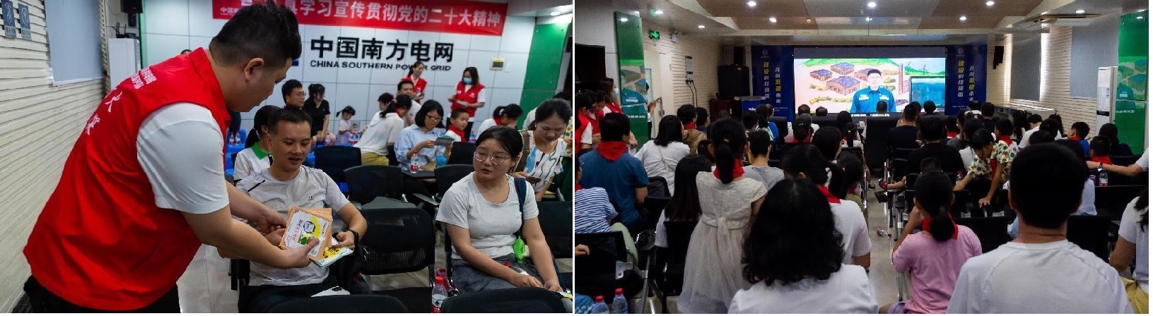 开幕式后,活动以“体验式学习+互动课堂”的形式开展。首先向参加活动人员现场赠阅电力科普读物,接着活动人员在现场观看了金湾局与中电联联合出品的《安全用电与节电》电力科普视频。