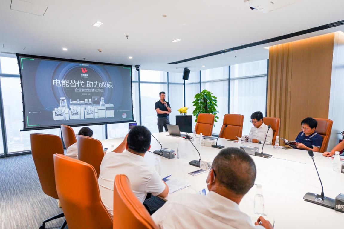 会上,珠海格力电器股份有限公司建筑环境与节能研究院高效机房研究所和暖通所、珠海优特智厨科技有限公司的专家们进行了精彩演讲,分享了冰蓄冷系统解决方案、高效热泵解决方案以及企业食堂智慧化升级方案等内容;南方电网互联网服务有限公司、南网融资租赁有限公司对综合能源服务系列“基础+”增值服务产品进行宣传和推广,介绍了产融结合为电网产业链上下游企业提供专业化的融资租赁金融服务和南网统一互联网金融服务总库“南网融e”。随后,与会人员参观了优特智厨公司全电智慧厨房,现场观摩、学习,对综合能源技术在电气厨房上的应用有了更直观的了解。