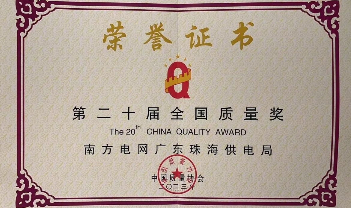 全国质量奖经党中央、国务院批准设立的奖项,20多年来引领、见证了中国企业的成长。珠海供电局深入贯彻落实南方电网 “全员参与、质量为要、共创价值、追求卓越”质量方针,坚持问题导向和系统思维,构建一系列具有电网特色的管理机制,从“经验式管理”到“现代企业管理”的蜕变,是南方电网首个荣获中国最高等级组织类质量奖项的单位。
