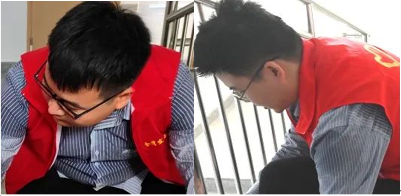 在闷热的楼梯间里,汗水顺着志愿者的脸颊滑落下来,不一会儿就湿透了衣背,却消减不了志愿者们为长者服务、为社会做好事的青春热情。