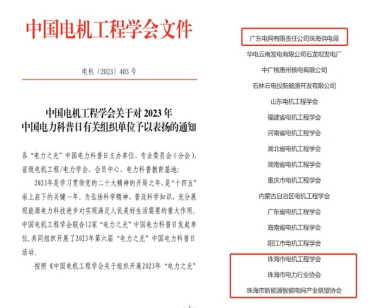 习近平总书记指出,科技创新、科学普及是实现创新发展的两翼,要把科学普及放在与科技创新同等重要的位置。2023年,珠海市电力行业协会、珠海市电机工程学会在省电机工程学会和市科学技术协会的大力支持和领导下,致力促进科普工作与科技创新协同发展,围绕普及电力科学知识、提高全社会对“电”的科学认知开展了四个方面工作:
