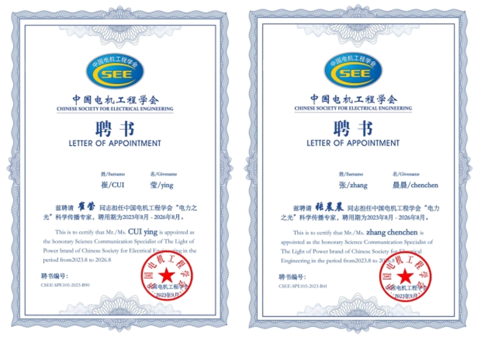 二是开展电力科普人才队伍建设。开展科普专家、科普服务志愿者队伍建设,珠海供电局崔莹、张晨晨荣获中国电机工程学会2023年度“电力之光”科学传播专家,并在“i志愿”服务系统注册学会电力科技志愿服务分队,吸收科技服务志愿者130余人。