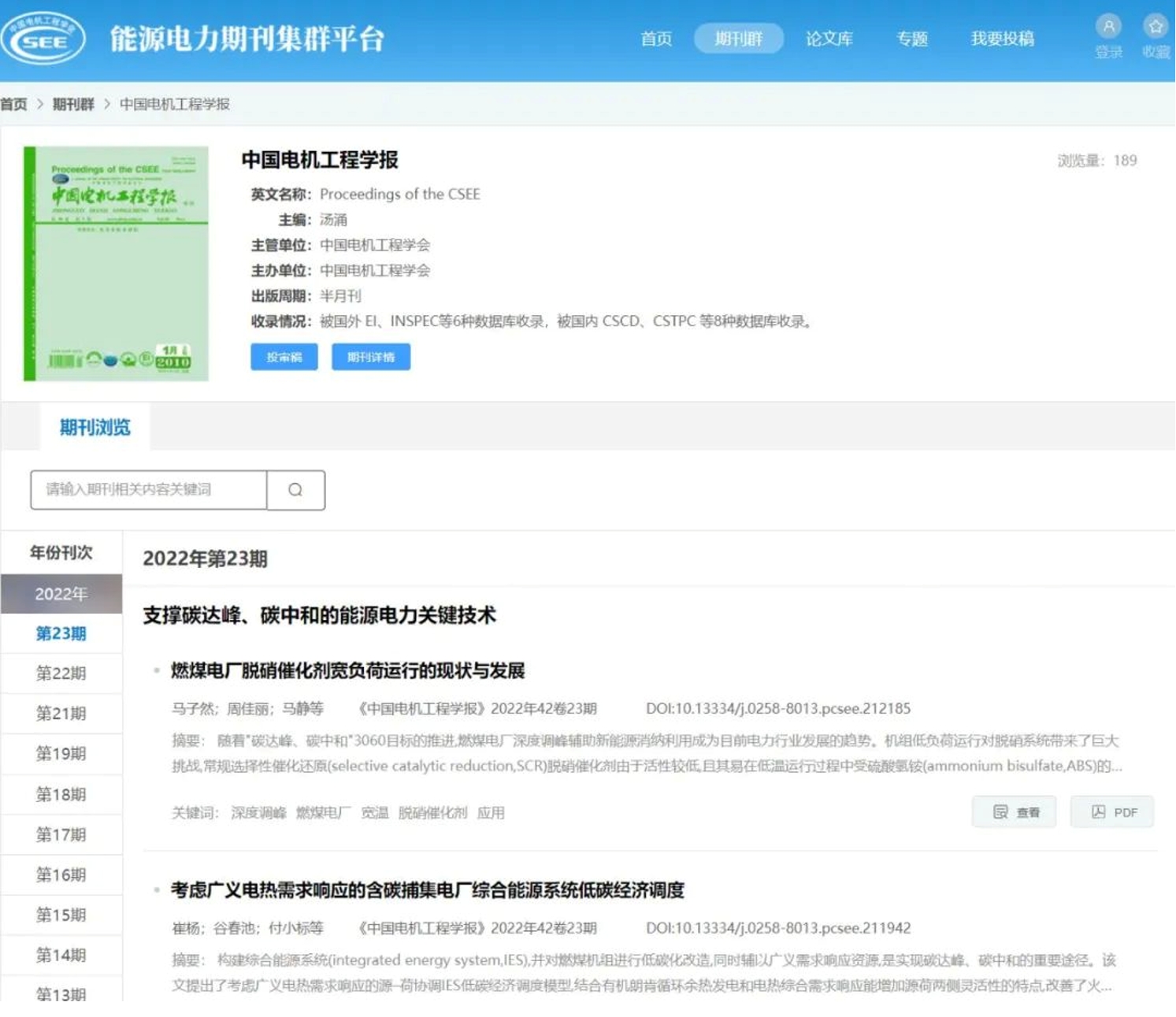 中国电机工程学会在中国科协“2022年度全国学会期刊出版能力提升计划”的支持下,在原有数字图书馆的基础上建设了能源电力期刊数字化集群平台,旨在通过打造能源电力领域期刊集群,联合行业内期刊资源,加强期刊之间的交流与沟通,初步实现期刊资源的积累和专家资源、知识资源的共建共享,充分发挥学会专家和会员资源优势,更快提升集群期刊的学术质量和国际影响力,使科技期刊能够更好地为学科发展提供支撑与服务。