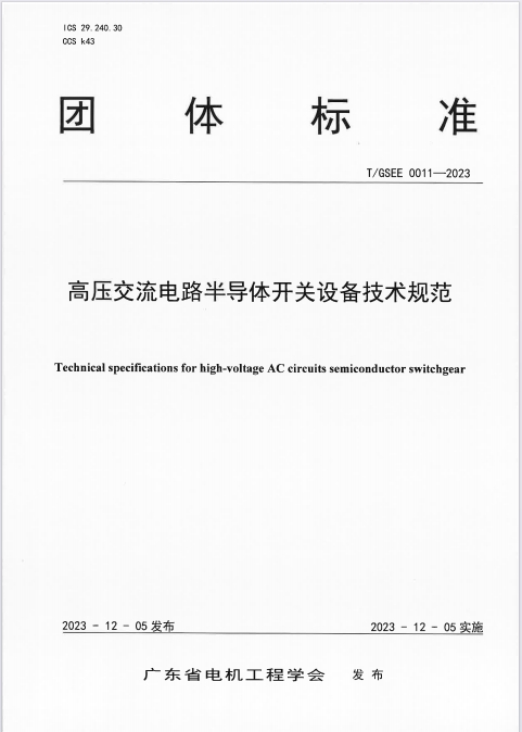 近日,学会批准发布《高压交流电路半导体开关设备技术规范》团体标准(以下简称“团标”),该团标由广东省标准化研究院(以下简称“省标院”)牵头编制。