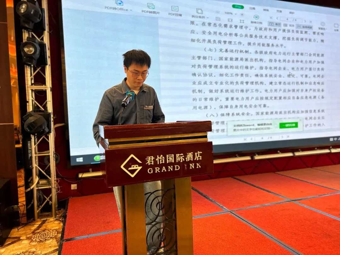 青岛鼎信通讯股份有限公司覃家荣进行了新型电力负荷管理系统方案和接线原理培训,主要讲解了建设背景、相关设备、方案选择和主要流程。