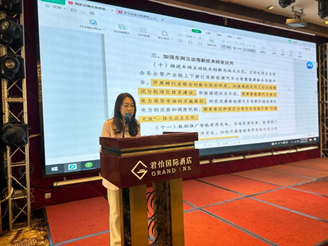珠海市电机工程学会秘书长杨继旺主持会议并致辞。珠海供电局三级拔尖专业技术专家周颖梅对新建住宅小区充电设施配建要求进行宣贯,重点解读了《国家发展改革委等部门关于进一步提升电动汽车充电基础设施服务保障能力的实施意见》和《珠海市居民小区电动汽车充电设施建设管理实施细则》。珠海供电局市场部专责柯永超重点宣贯了新型电力负荷管理系统建设相关政策和业务办理流程。