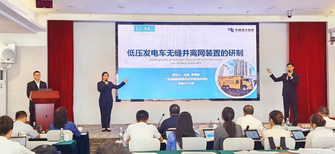 “我们创客团队首次研制出低压发电车无缝并离网装置,并在实际检修作业中成功运用,实现用户对发电车转供电‘零感知’。”9月11日,在2024年中央企业QC小组成果发表赛中,金湾创客课题负责人李志杰介绍团队项目。目前,《低压发电车无缝并离网装置》项目已获得中央企业QC小组成果发表赛一等奖、全国QC小组活动成果交流会(第一期)示范级、南方电网公司2024年QC创新奖一等奖等荣誉,同时被推荐参加2025年ICQCC(国际赛)选拔赛。据了解,无缝并离网技术与供电质量调控功能的融合在低压发电车上应用尚属南方电网范围内首例。